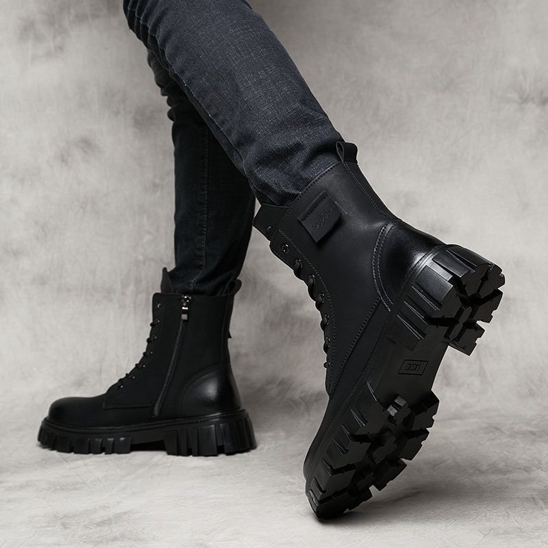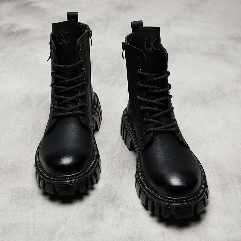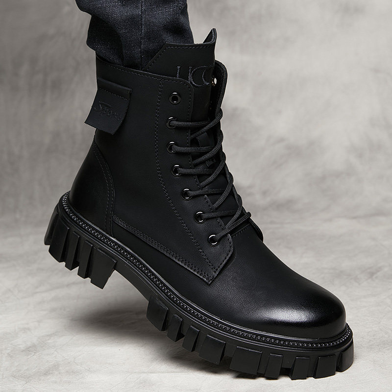 男士马丁靴男秋冬季加绒英伦风高帮真皮增高靴子工装靴潮流皮靴男