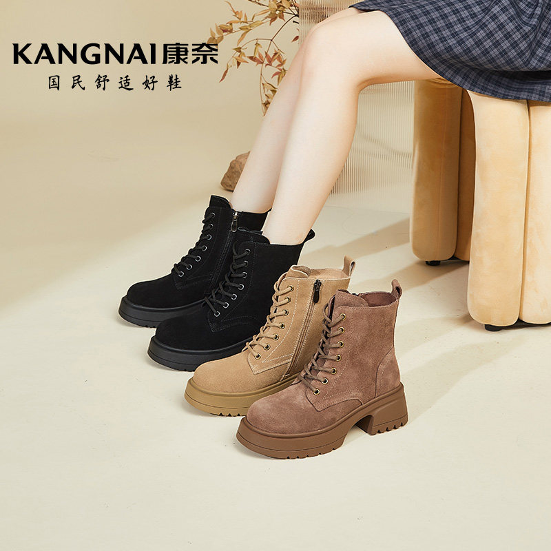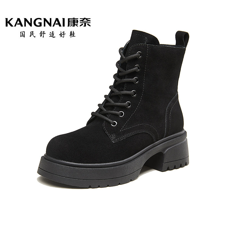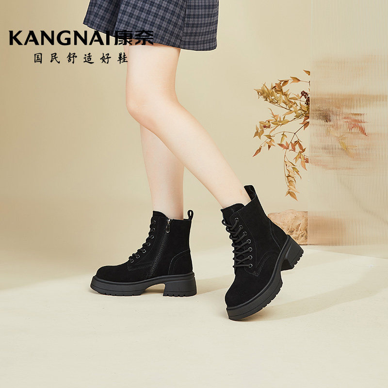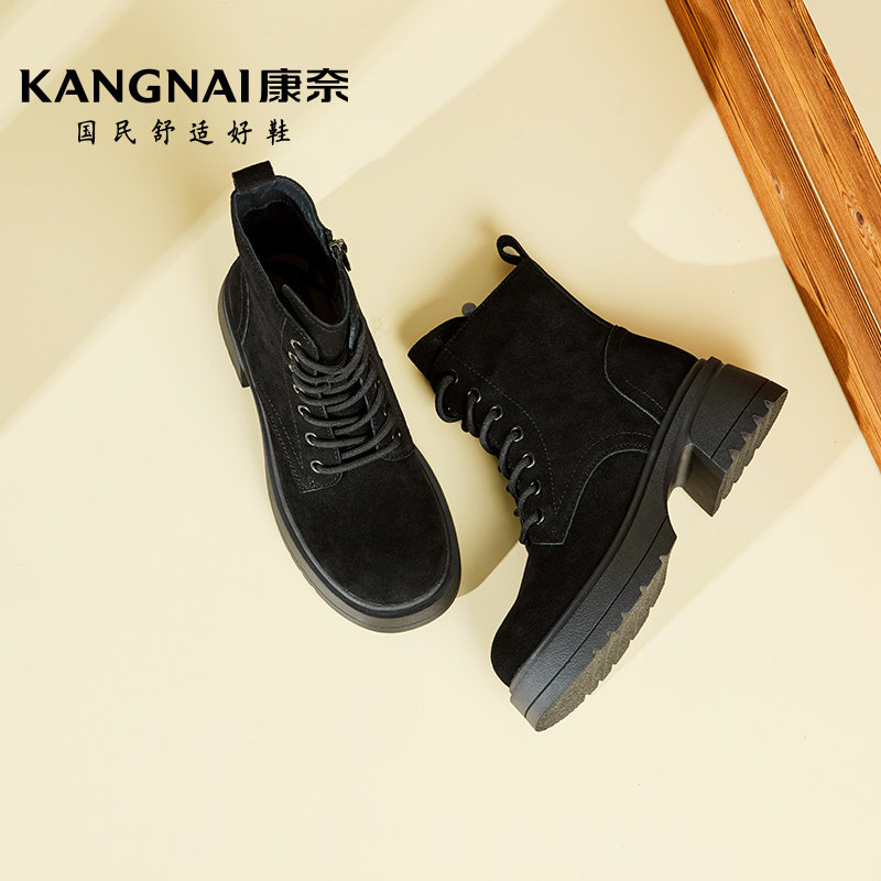 康奈皮靴真皮英伦风潮流马丁靴女款粗跟女短靴通勤休闲女靴子