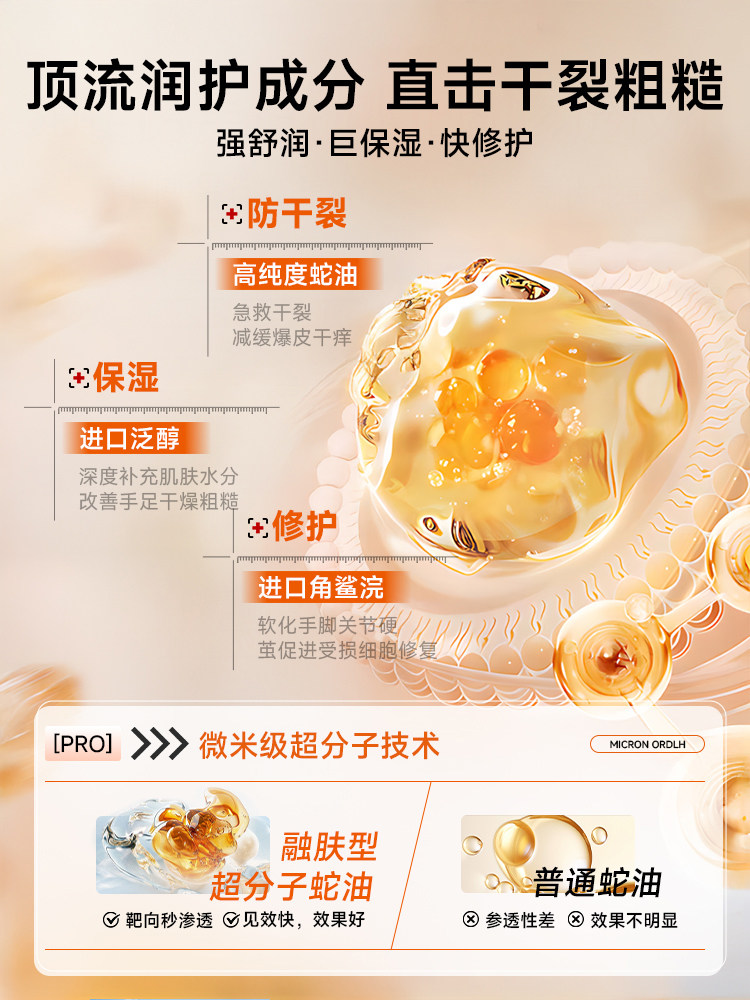推荐理由:蛇油膏脚后跟干裂起硬皮防裂膏手足干裂皴裂膏专治手脚开裂护足霜