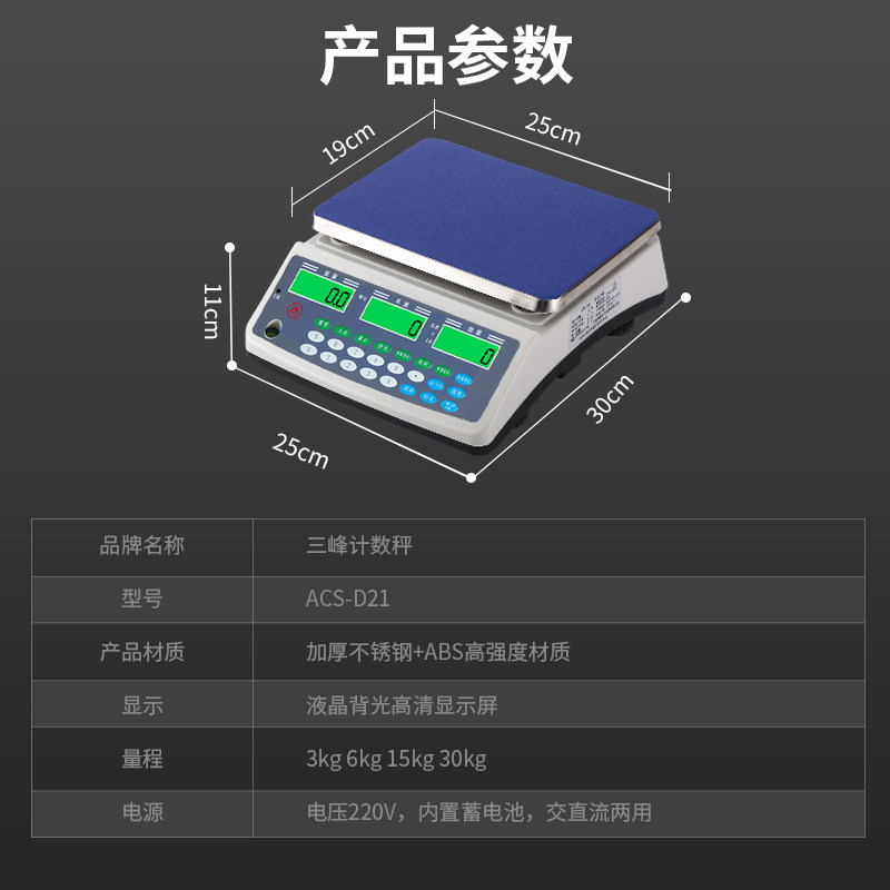 推荐理由:上海三峰电子称计数秤30kg高精度0.1g工业称重台秤计数电子秤D21