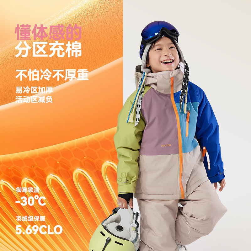VECTOR玩可拓儿童滑雪服套装男女童保暖防水夹棉加厚滑雪衣裤童装