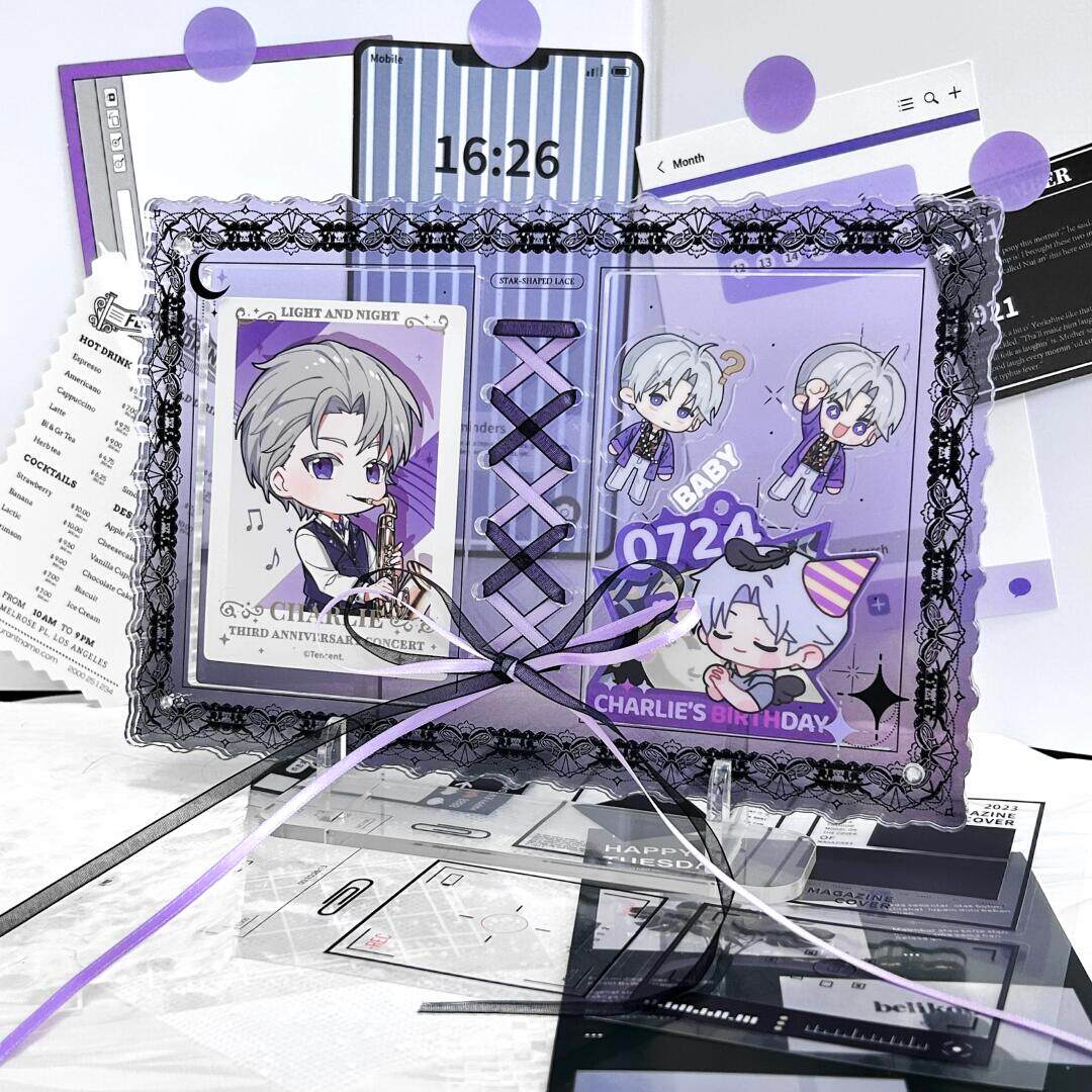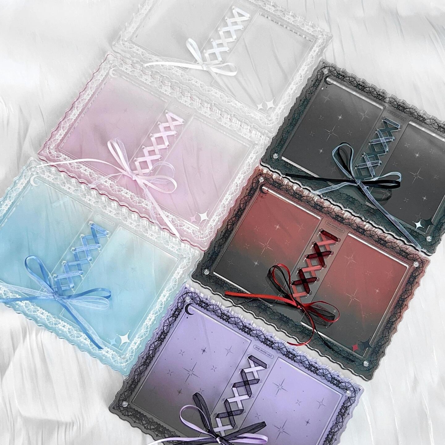 绑带蕾丝蝴蝶结亚克力谷美卡套爱豆双卡收纳盒拍立得相框保护套
