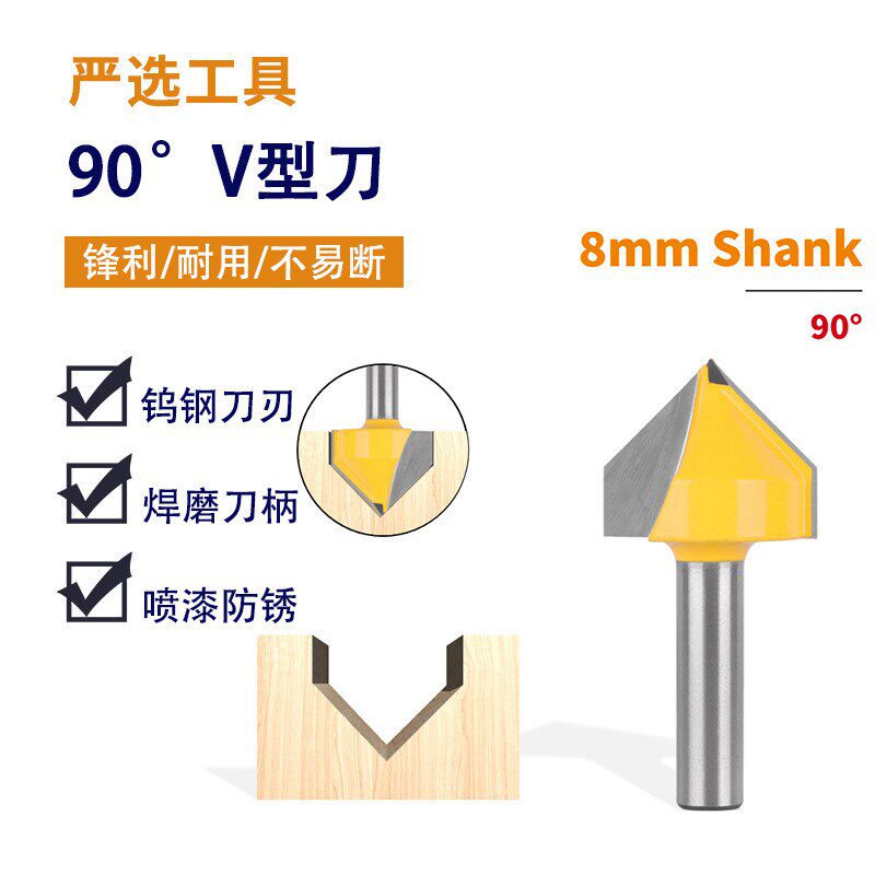 90°V型刀铣刀雕刻刀头花型开槽集成墙面折边刀工具木工铣刀