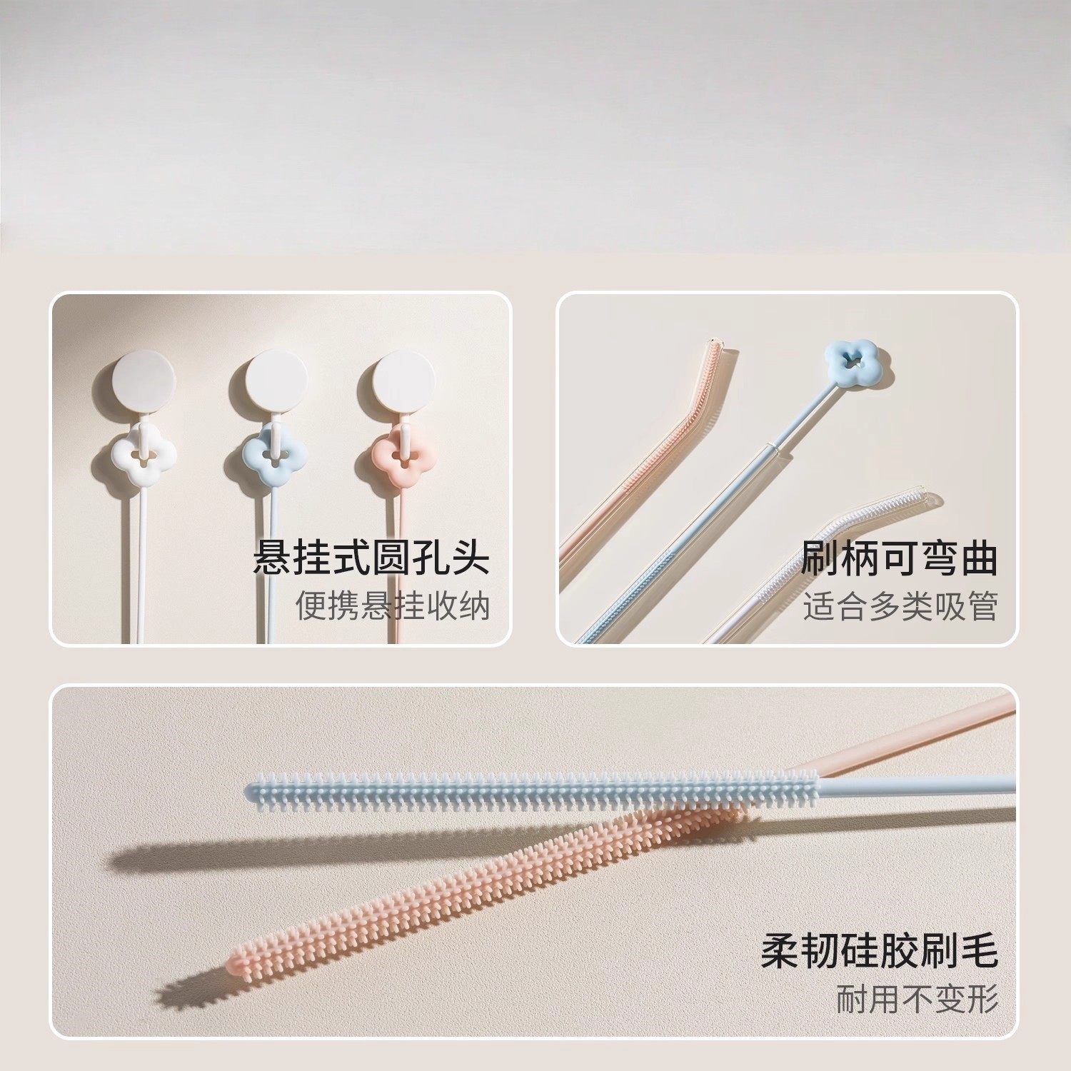 新款婴儿可弯曲吸管刷硅胶长柄刷宝宝奶瓶清洗神器儿童吸管清洁刷