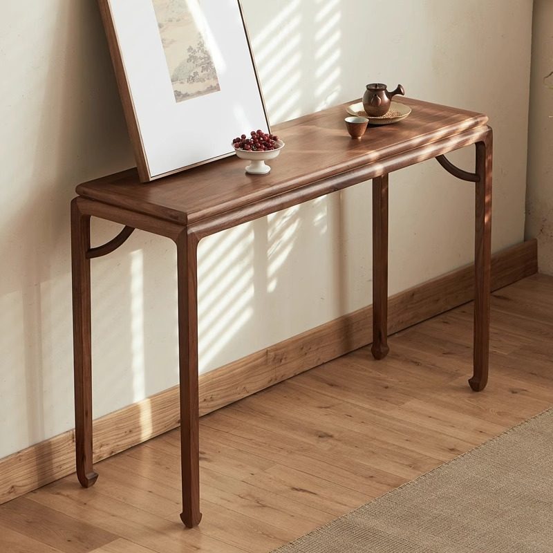 新中式玄关台轻奢玄关桌子靠墙实木长条窄桌黑胡桃端景台条案供桌