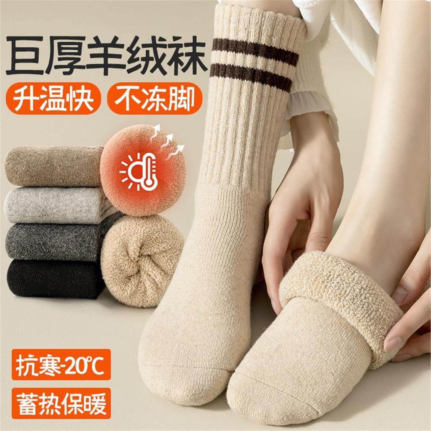 羊绒袜子女防脚气防臭纯棉秋冬款长筒加厚加绒保暖冬天足部健康