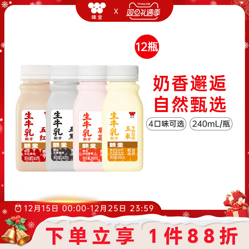 味全草莓五黑五红玉米风味牛奶饮品*12瓶组合 冷藏饮品