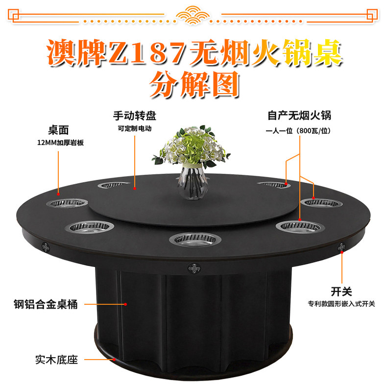 推荐理由:澳牌Z187无烟自净化下沉式火锅电磁炉圆桌酒店会所多功能电动餐桌