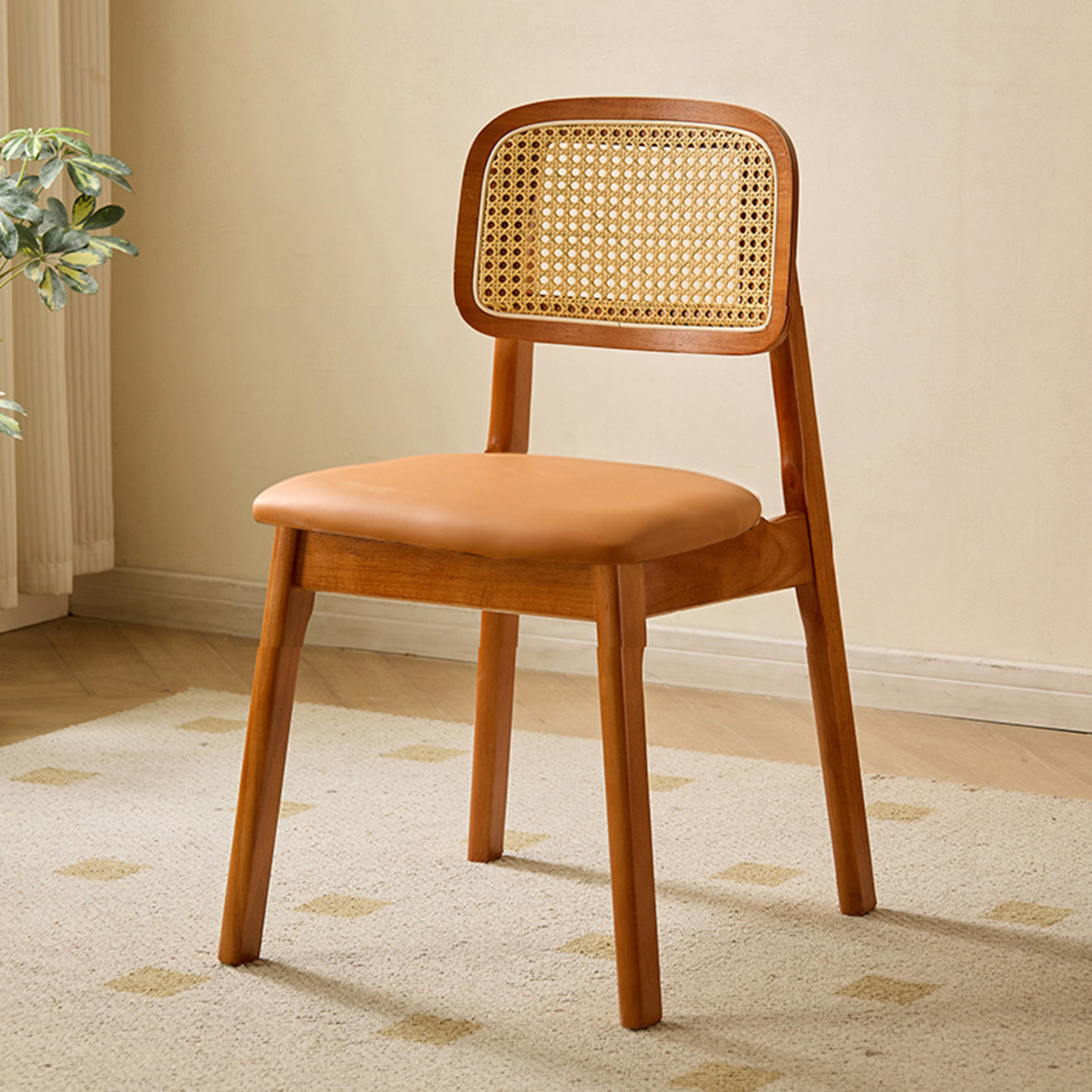 家用实木靠背餐椅北欧原木色藤编椅子侘寂风中古民宿餐厅休闲藤椅