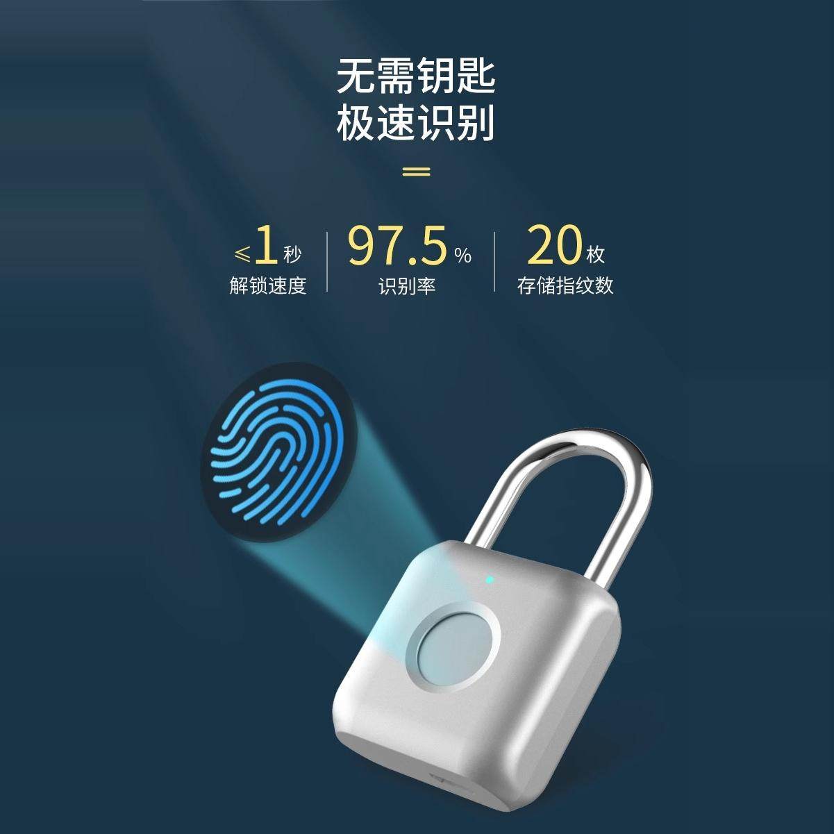 智能锁指纹锁小挂锁宿舍柜子门锁防水书包健身房指纹挂锁行李箱