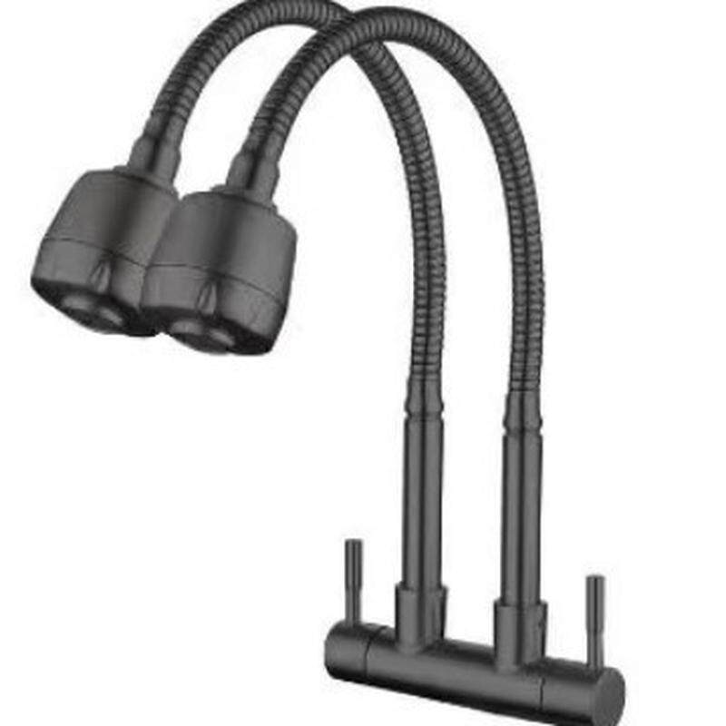 304不锈钢菜盆金双出水单冷拉丝龙头万向旋转多功能黑色厨房龙头