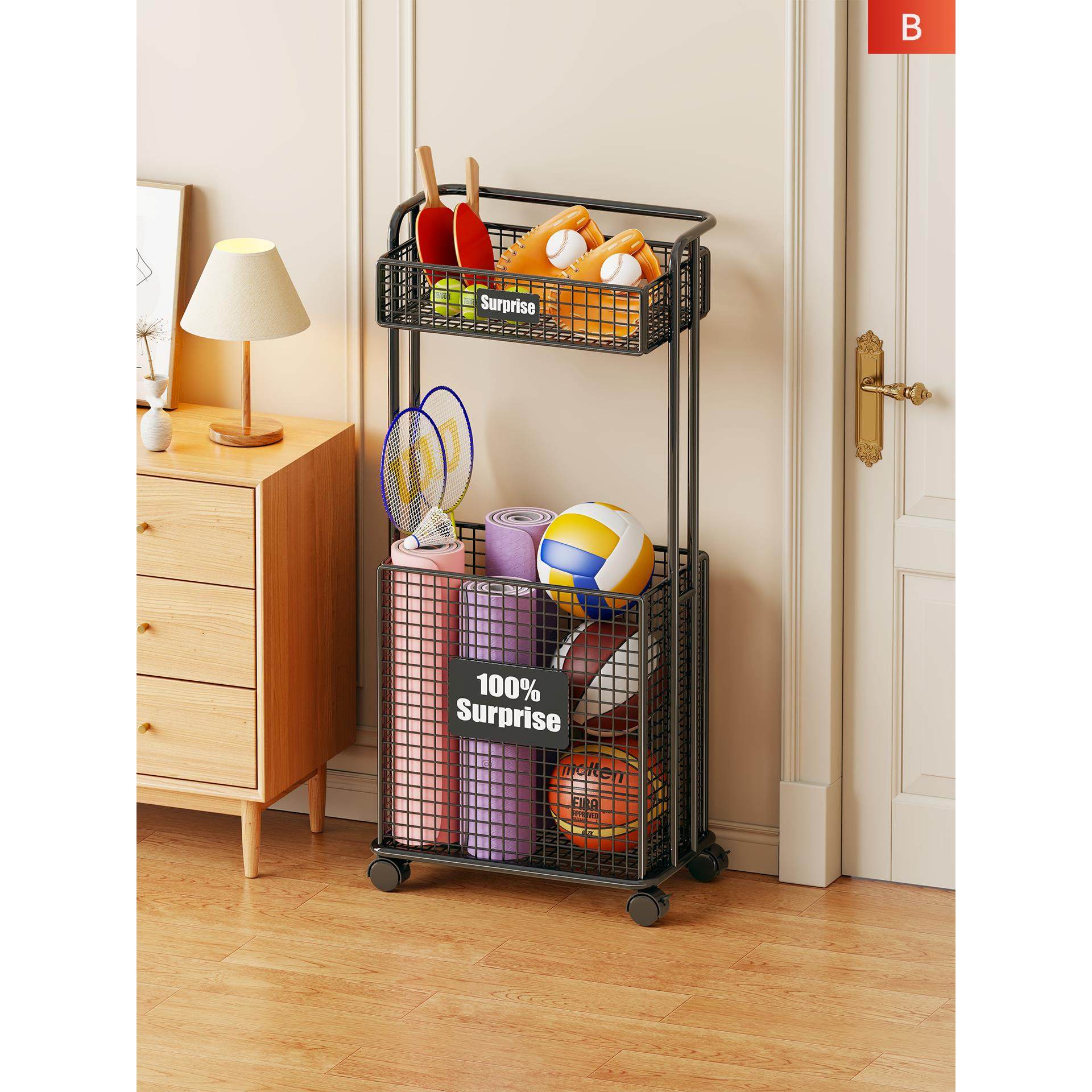 瑜伽垫收纳筐家用大容量带轮可移动体育用品置物架健身器材收纳架
