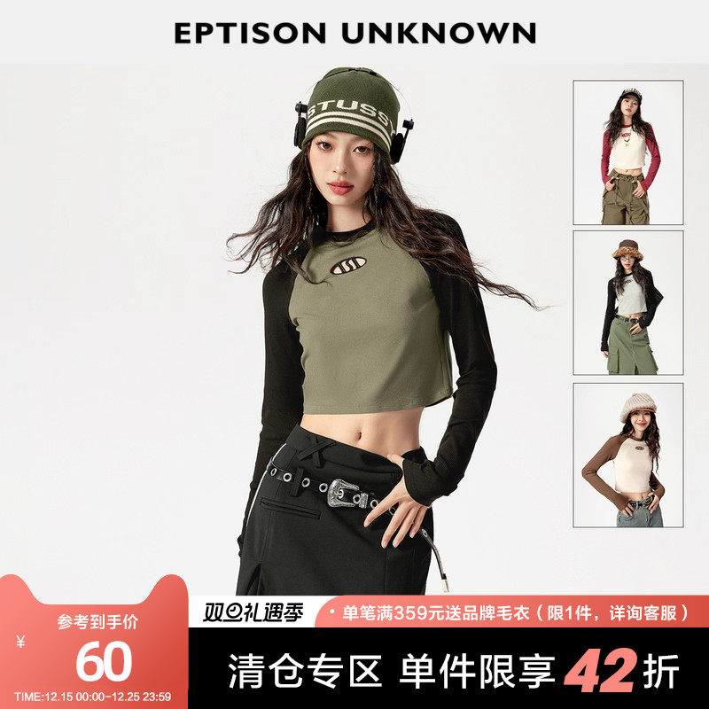 EPTISONT恤女2025秋季新款短款修身长袖洋气复古内搭打底衫上衣