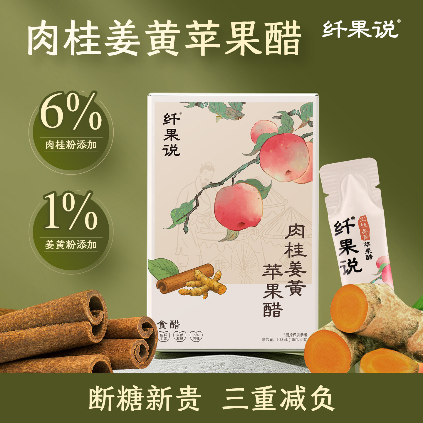 纤果说原浆苹果醋古法陈酿醋0蔗糖0脂浓缩发酵非饮料小包装