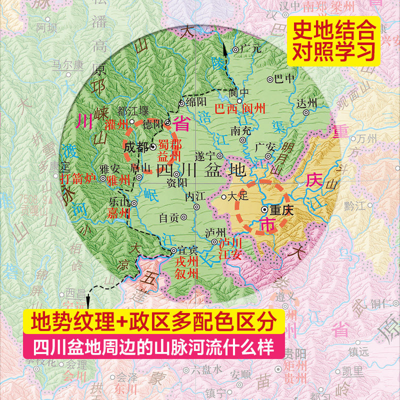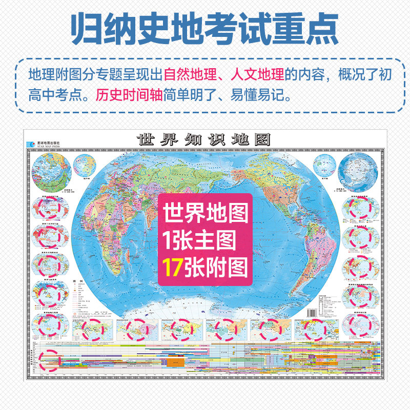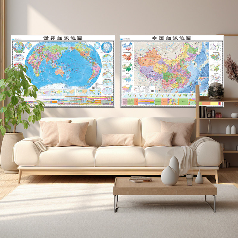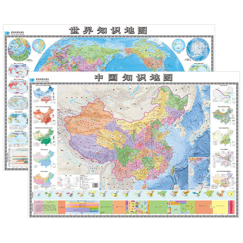 【星球社直营】中国地图和世界地图 初中生专用地理知识墙贴 行政区划地形图 星球地图出版社