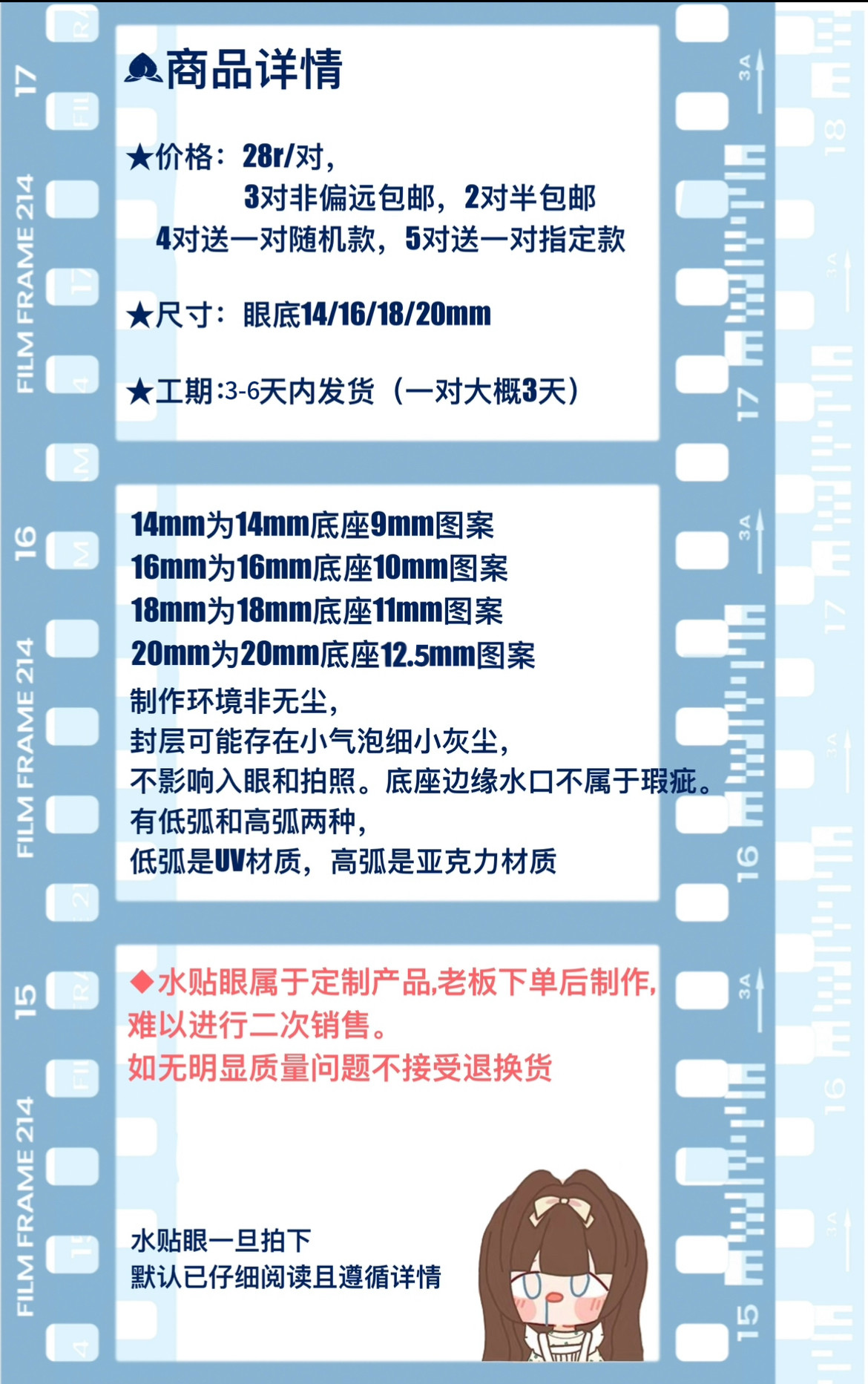 【nana】水贴眼BJD/MDD/tinyfox/二次元卡通眼珠,工期15天