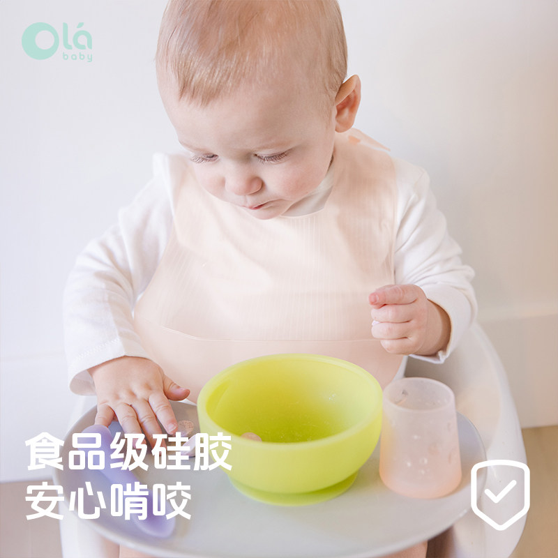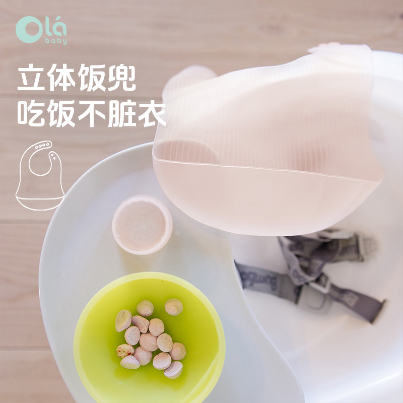 Olababy婴儿辅食吃饭饭兜小宝宝防水食饭兜婴儿围嘴硅胶围兜轻薄