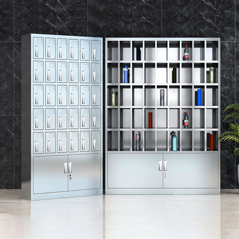 不锈钢水杯柜工厂车间茶杯存放柜员工休息室多格带门置物水杯柜子