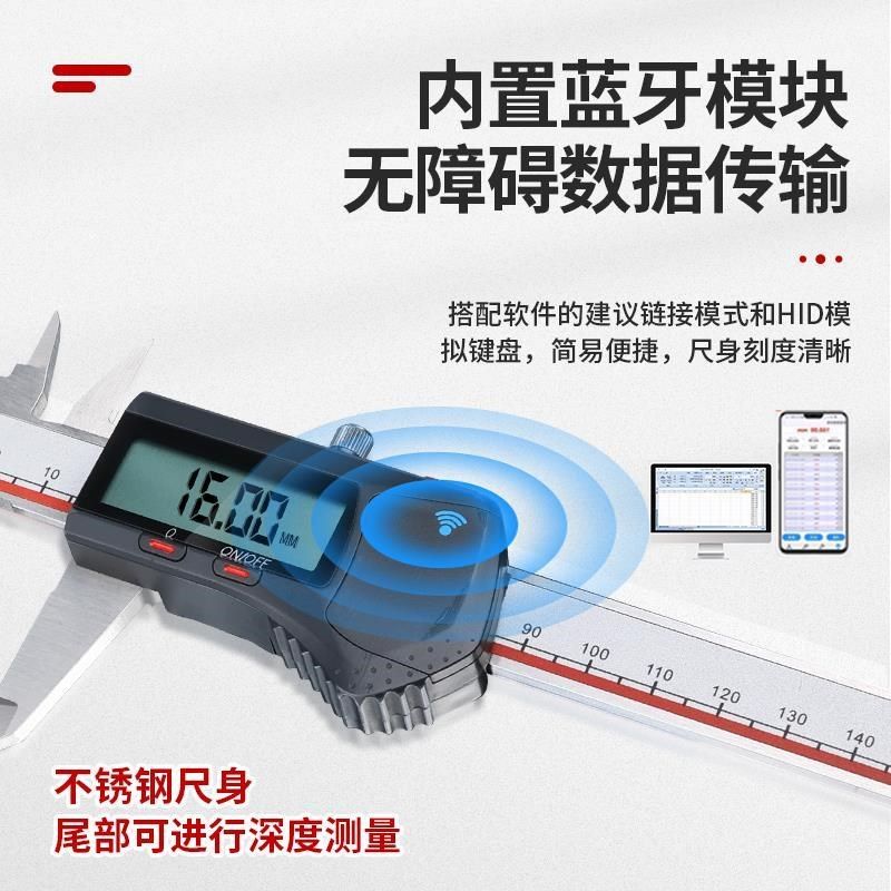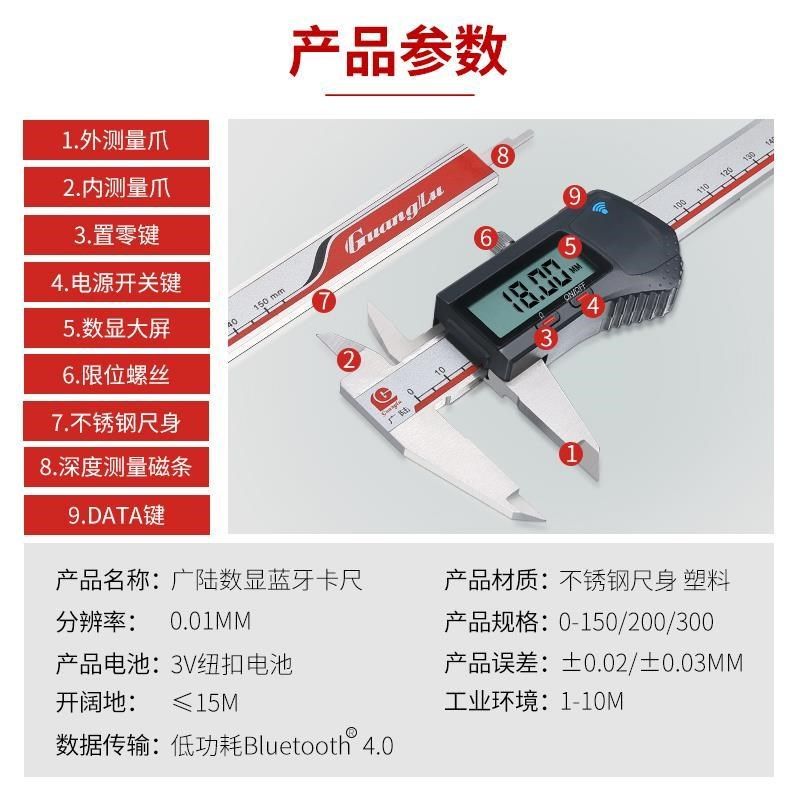 广陆蓝牙数显卡尺游标内置不锈钢150mm工业级高精度塑料电子桂林
