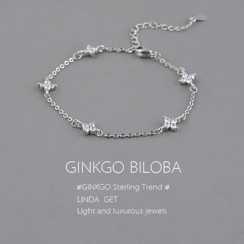 925纯银轻奢风四叶草锆石手链百搭简约气质不掉色满天星手串刻字