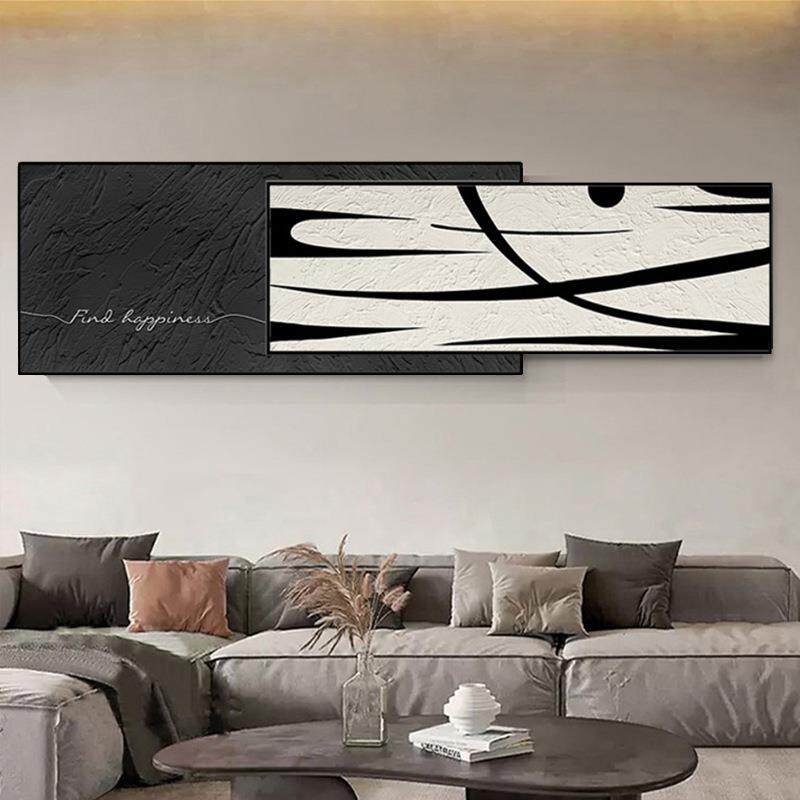 现代简约黑白抽象客厅装饰画高级感肌理横版叠加沙发卧室背景挂画