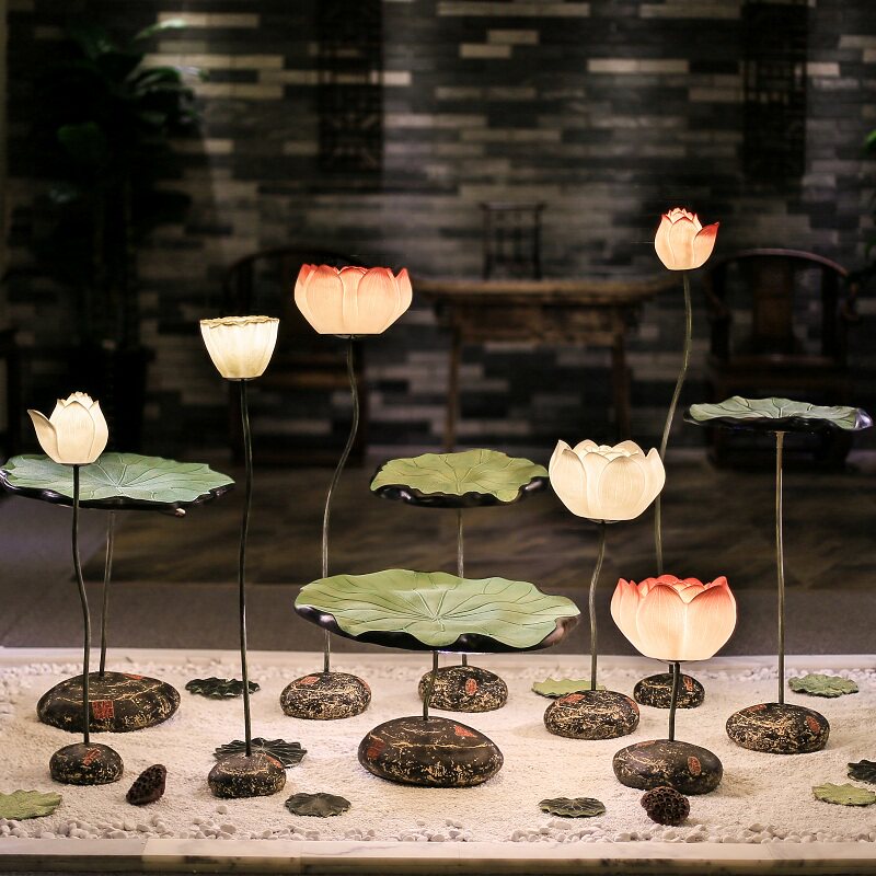 新中式落b地灯客厅茶楼卧室走廊落地台灯组合装饰荷花古典装饰灯