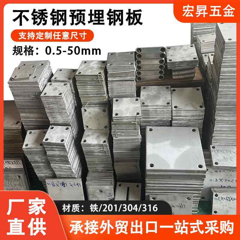 304不锈钢方底板预埋件钢板圆孔板栏杆立柱固定片地脚板钢管配件