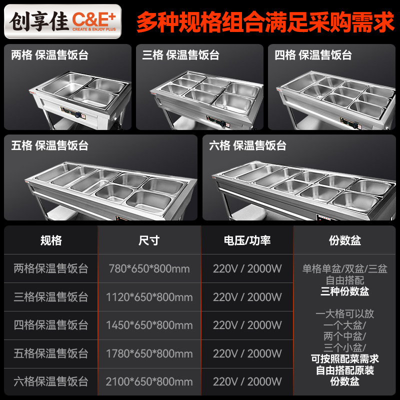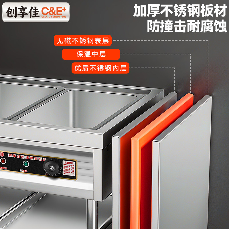 推荐理由:快餐保温台商用加热台式面馆臊子浇头自动控温售饭餐饮自助快餐车