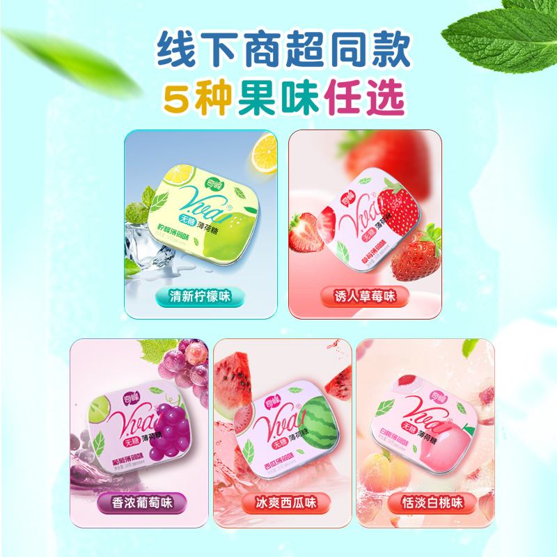 无糖薄荷糖2盒,5种水果口味,小巧铁盒随身带,约会来一颗,亲嘴防尴尬,清新口气,开车、上班含一颗,瞬间爽爆大脑,超级提神,无糖低卡,浓醇果香,爽爆味蕾!!