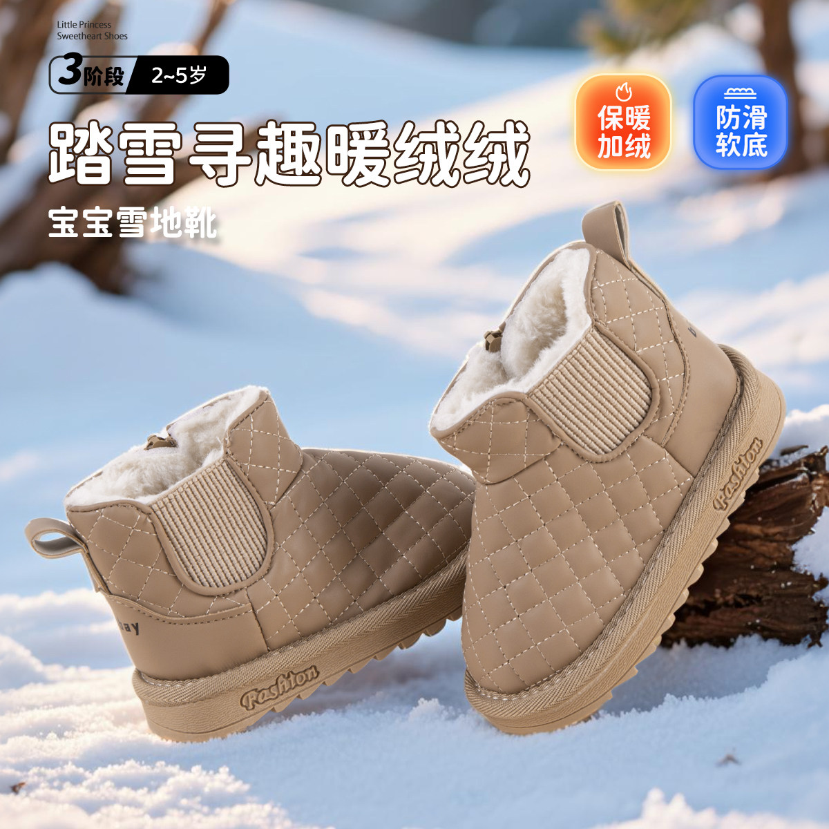 贝贝怡童鞋秋冬女童防滑宝宝鞋中帮拉链加绒雪地靴百搭休闲棉鞋