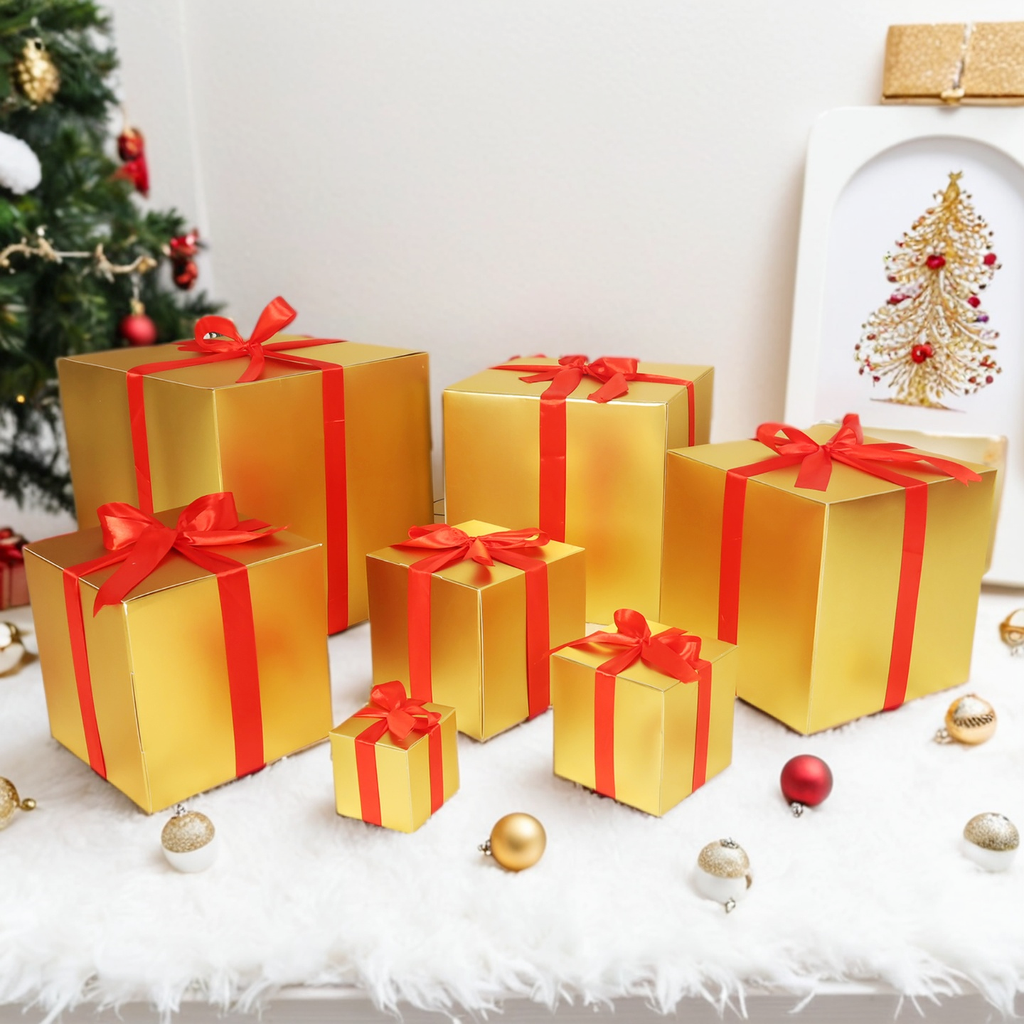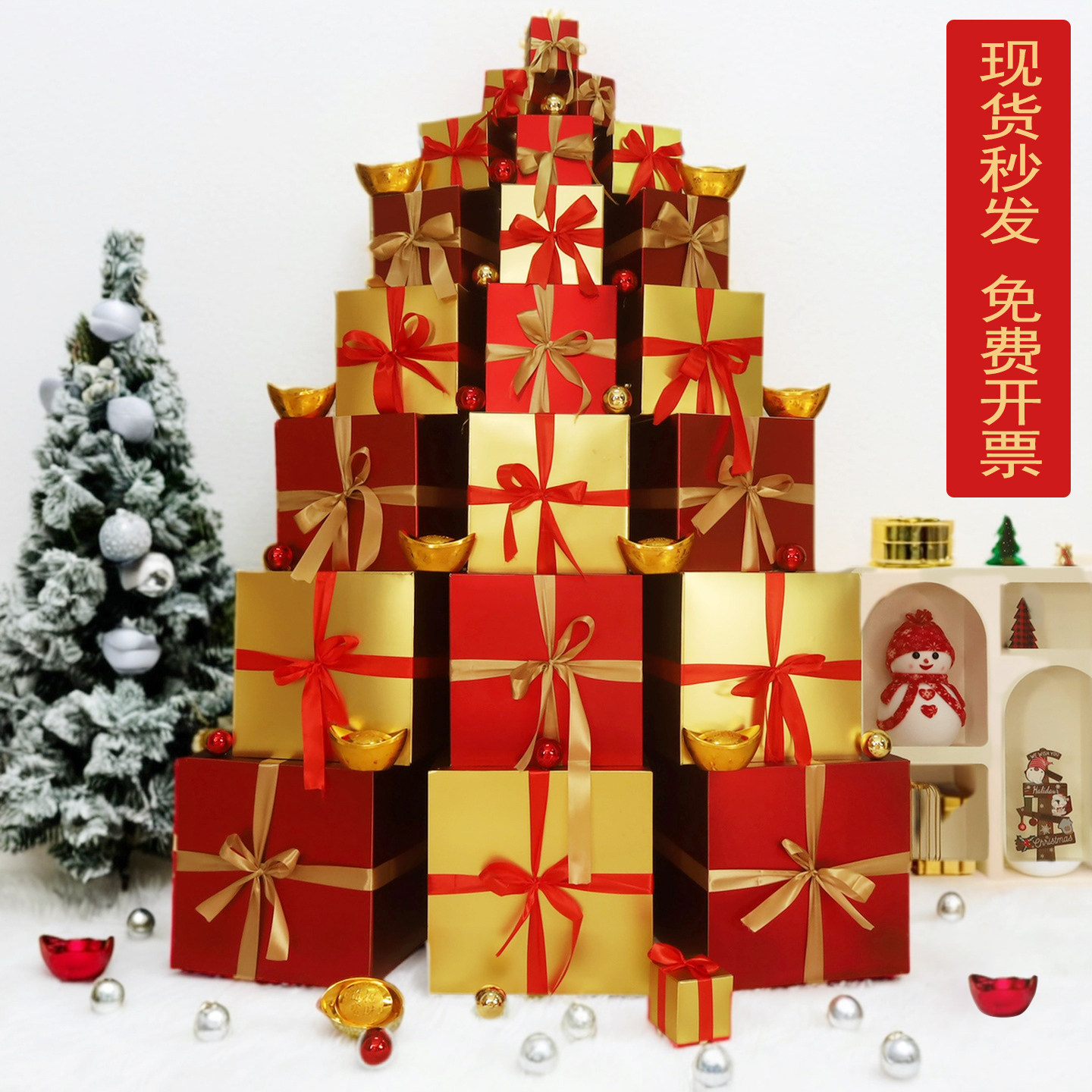 推荐理由:圣诞节装饰礼盒堆头商场橱窗金红色礼品物空盒子场景布置道具摆件