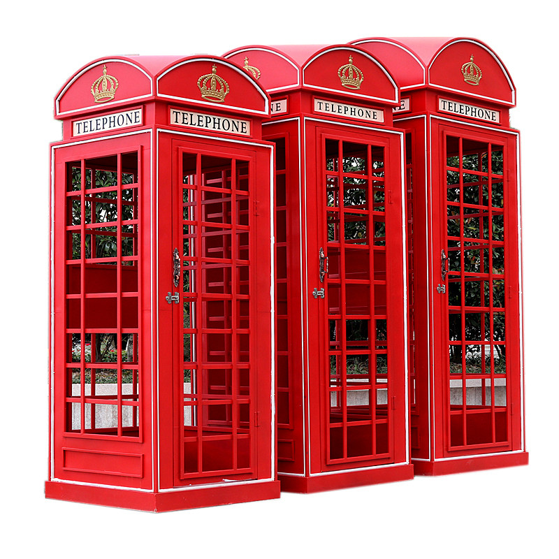 红色电话亭英伦风金属亭子落地摆件邮筒路牌套装组合美陈影视道具