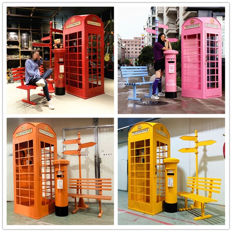 推荐理由:红色电话亭英伦风金属亭子落地摆件邮筒路牌套装组合美陈影视道具