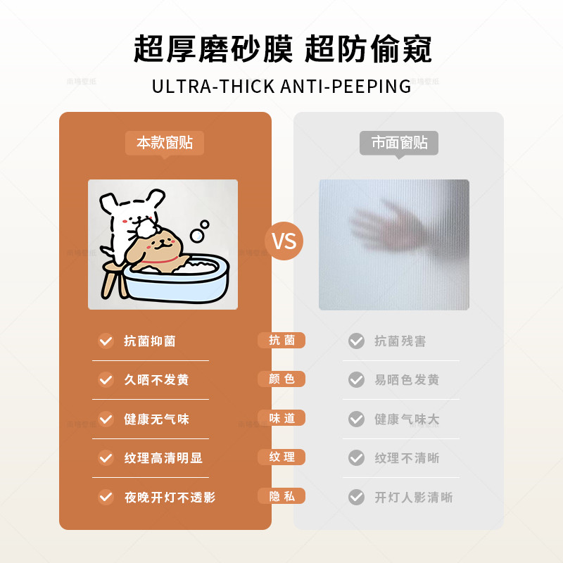 推荐理由:卡通浴室玻璃贴纸透光不透明磨砂窗户贴膜防走光防偷窥卫生间窗花