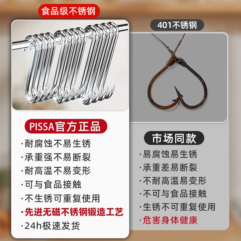 推荐理由:腊肉挂钩挂肉钩子加粗S型晒304大号不锈钢实心挂猪肉香肠厨房承重