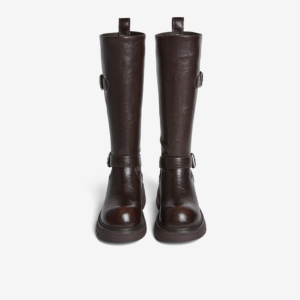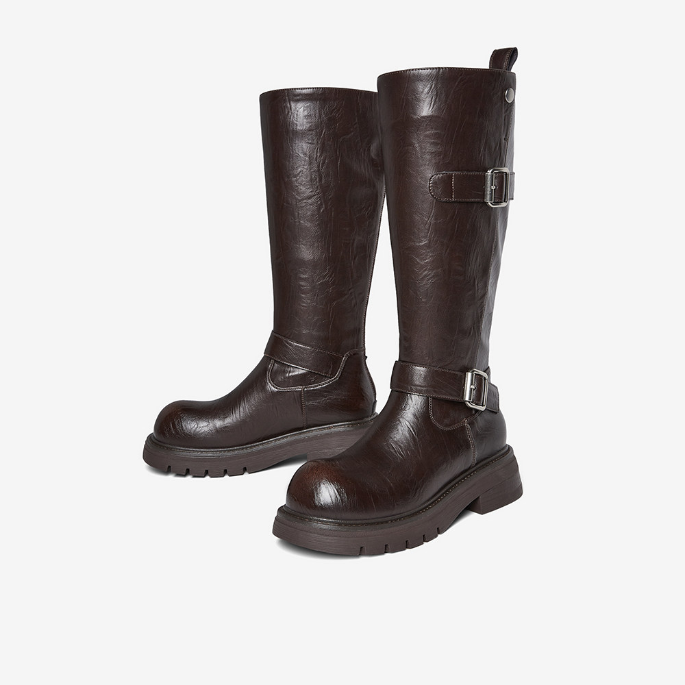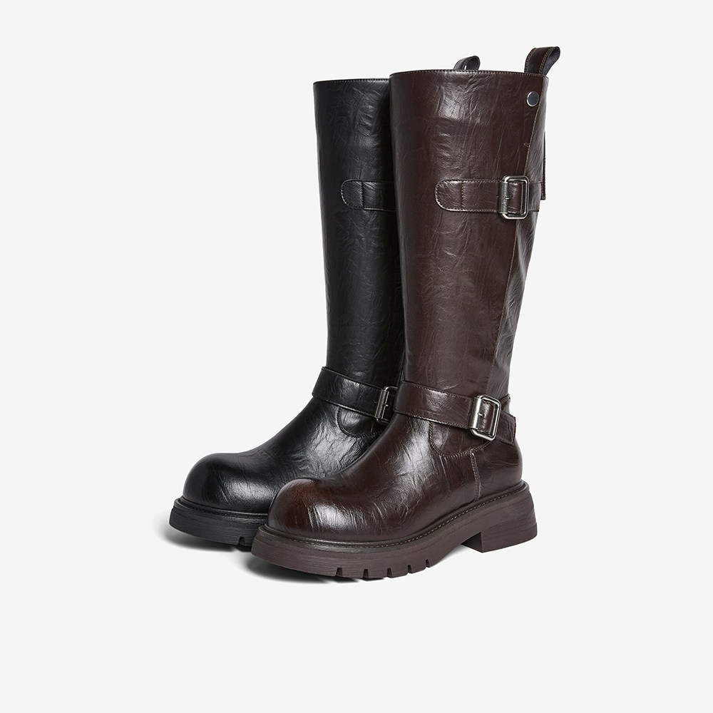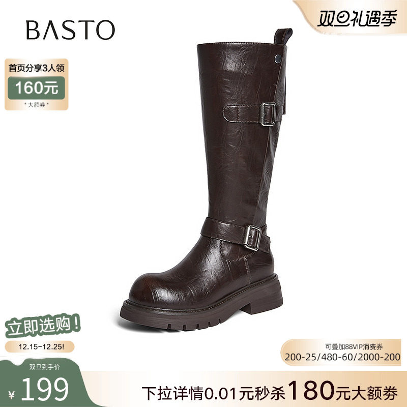 百思图2025冬季新款圆头粗跟骑士靴大筒围显瘦女高筒长靴W2053DG5