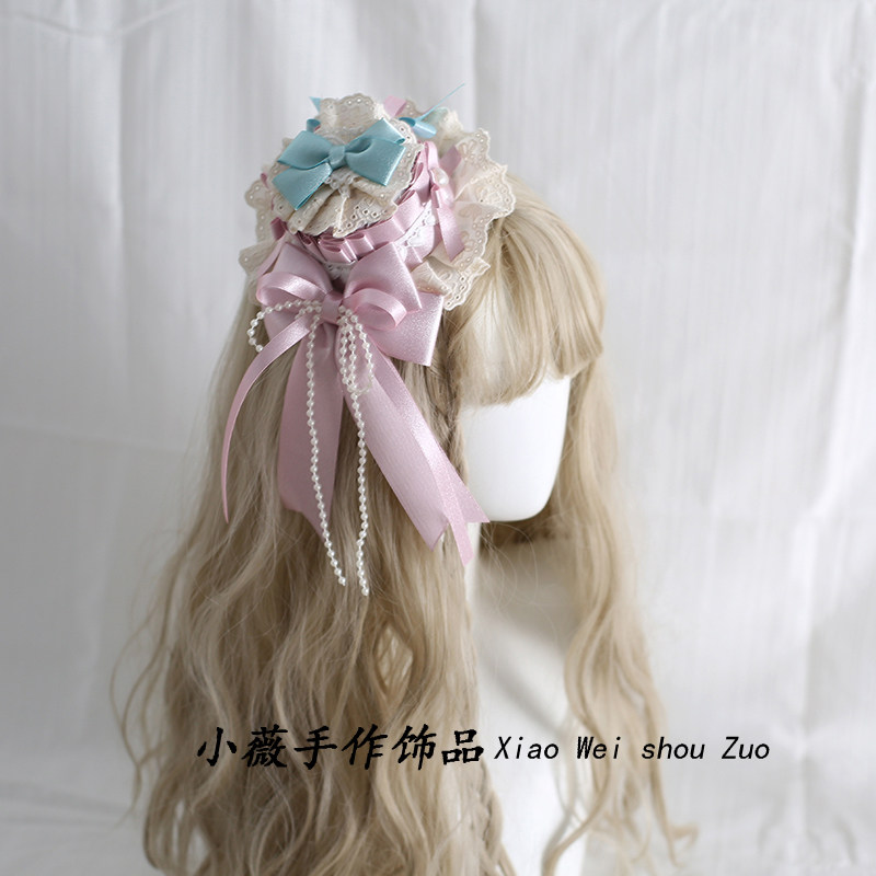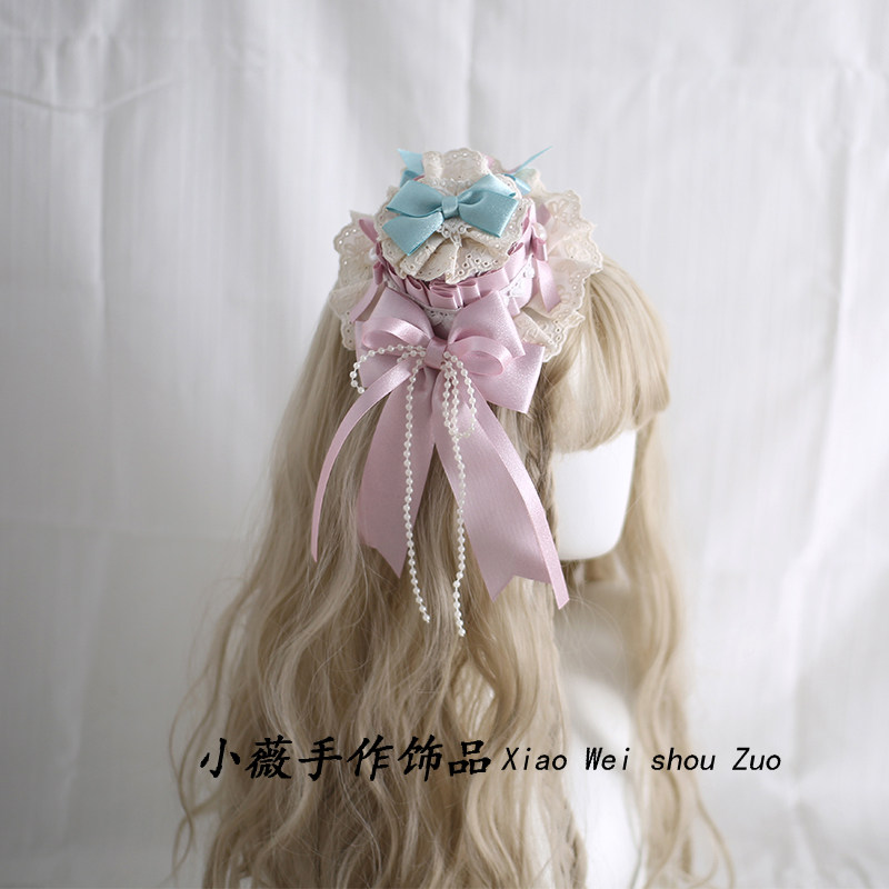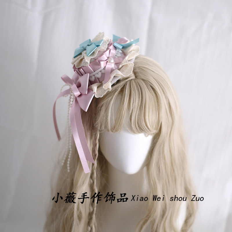 手作纸杯蛋糕Lolita小礼帽浅蓝粉蛋糕帽甜品帽洛丽塔可爱小物头饰