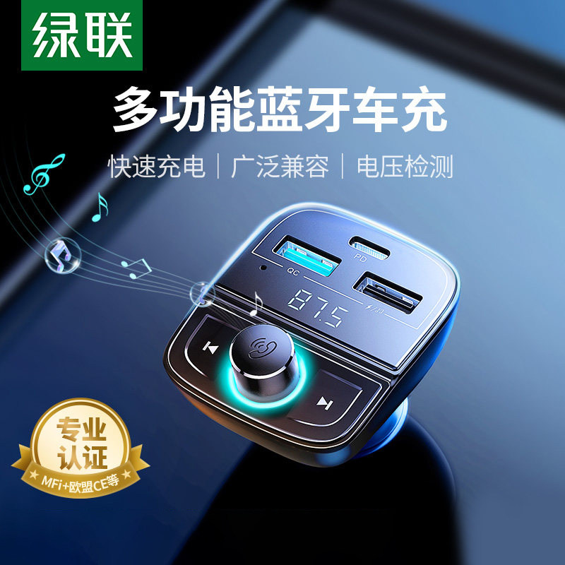 绿联车载蓝牙接收FM发射器无损音质mp3音乐播放汽车充电点烟器Aux