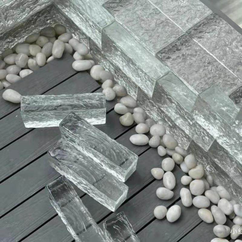 超白双面冰晶纹水晶砖长条波纹透明玻璃砖景观建材客厅墙面