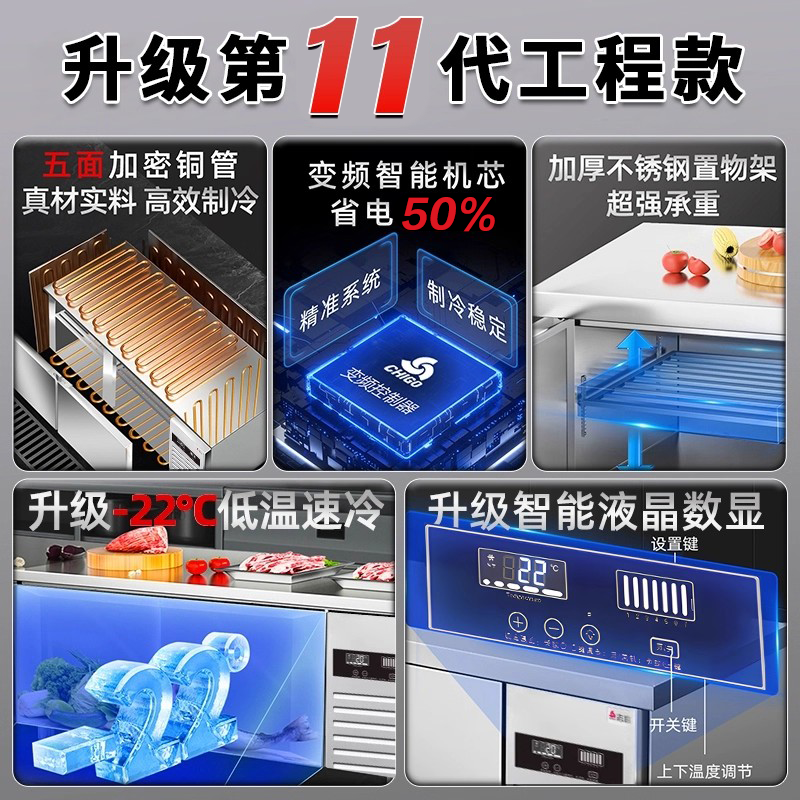 志高冷藏工作台商用冰柜冰箱冷冻柜不锈钢厨房风冷保鲜平冷操作台