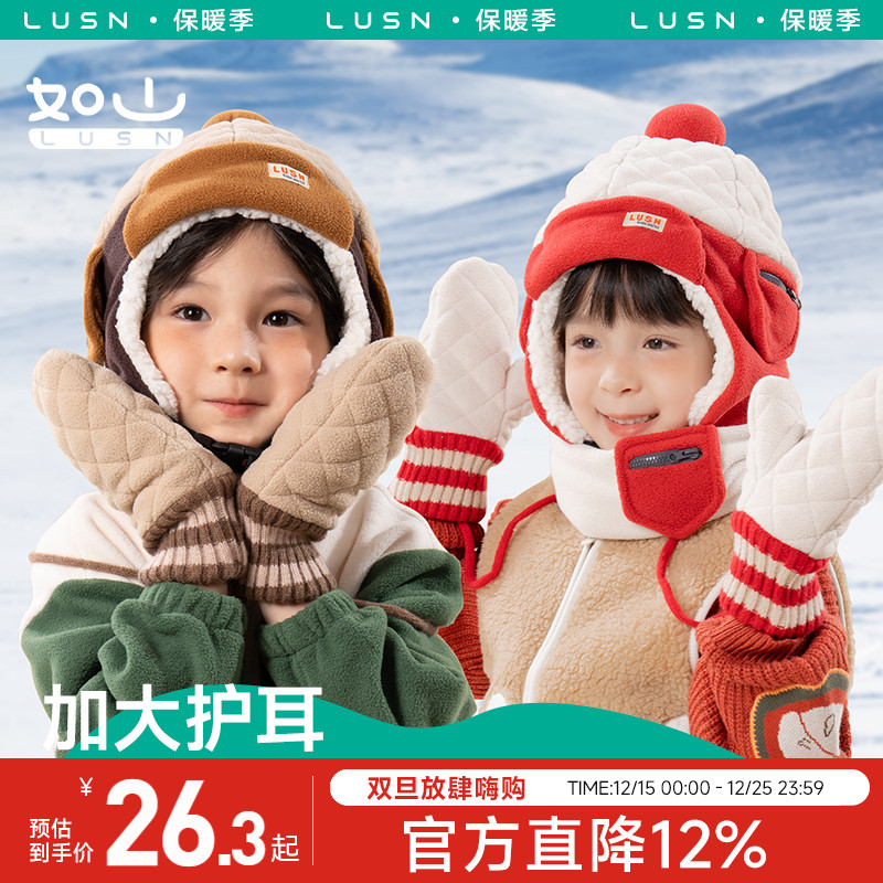 如山儿童帽子秋冬季宝宝男童女孩新款外出防风围巾保暖护耳雷锋帽
