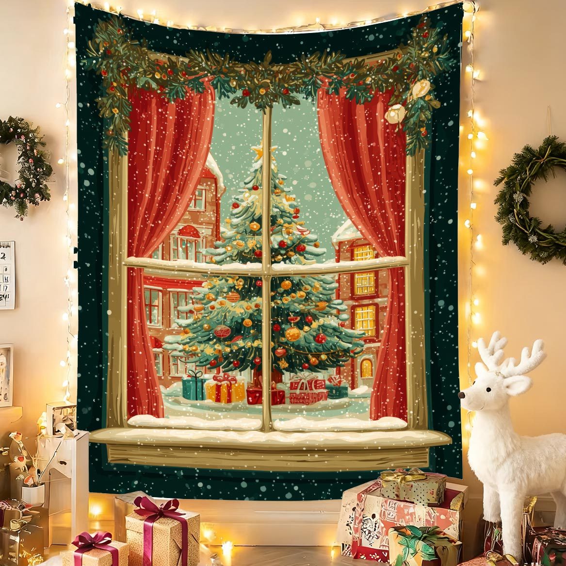 九慕新款圣诞窗户挂布圣诞节聚会场景布置氛围装饰墙面拍照背景布