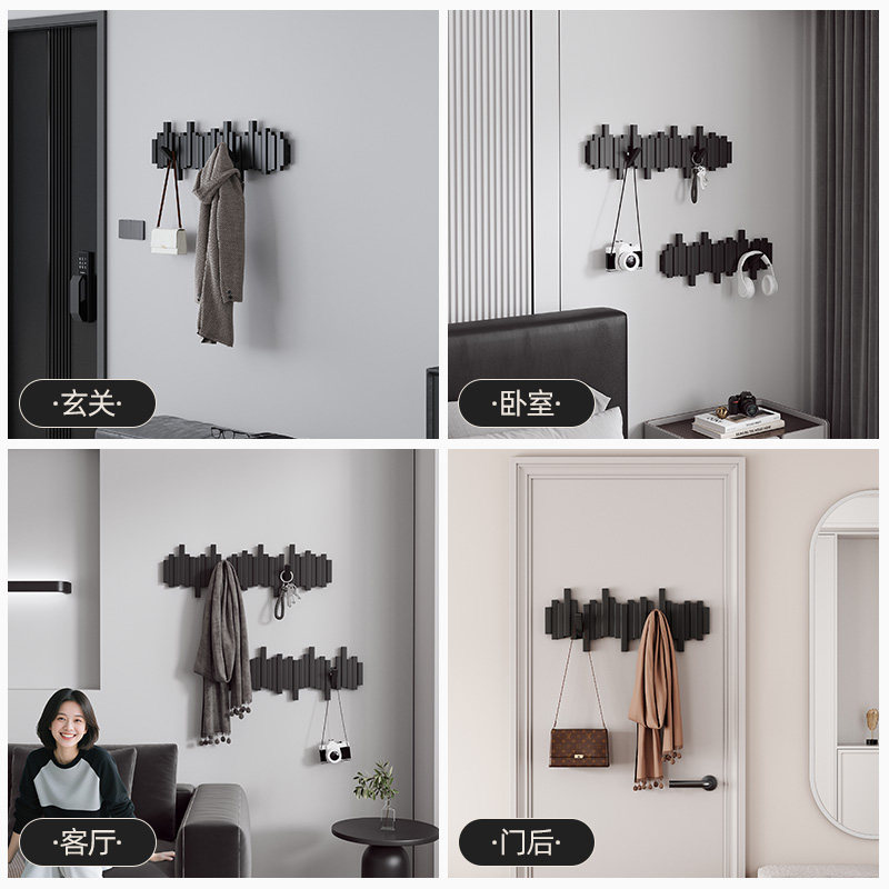实木钢琴键挂衣架墙上壁挂衣钩卧室玄关入户门后置物免打孔衣帽架