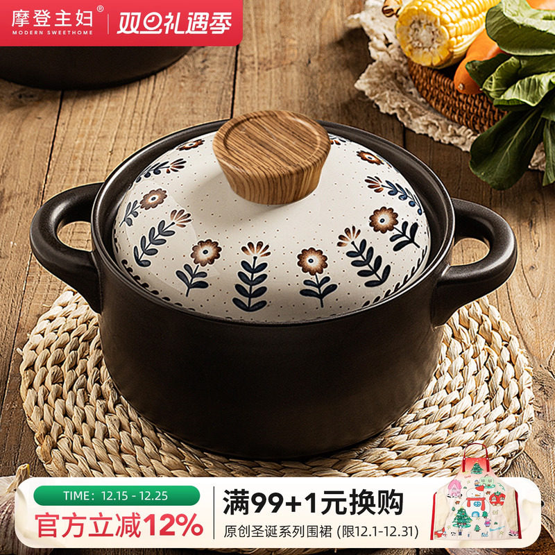 摩登主妇砂锅煲炖锅家用耐高温干烧不裂煲汤锅燃气灶专用陶瓷沙锅