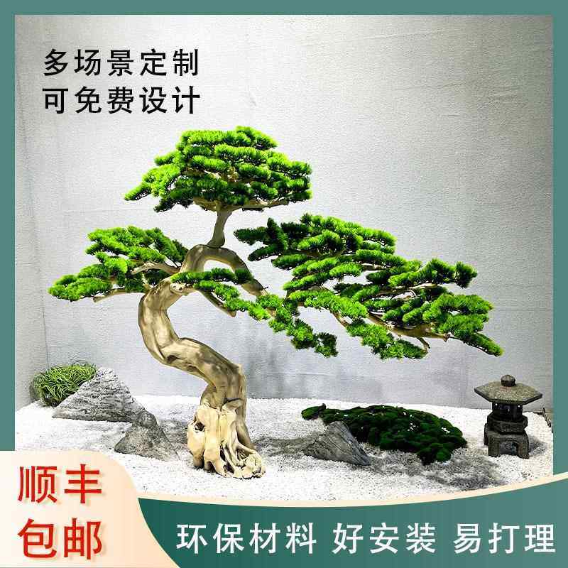 仿真迎客松树造景室内软装假树楼梯玄关装饰新中式室内外橱窗摆件