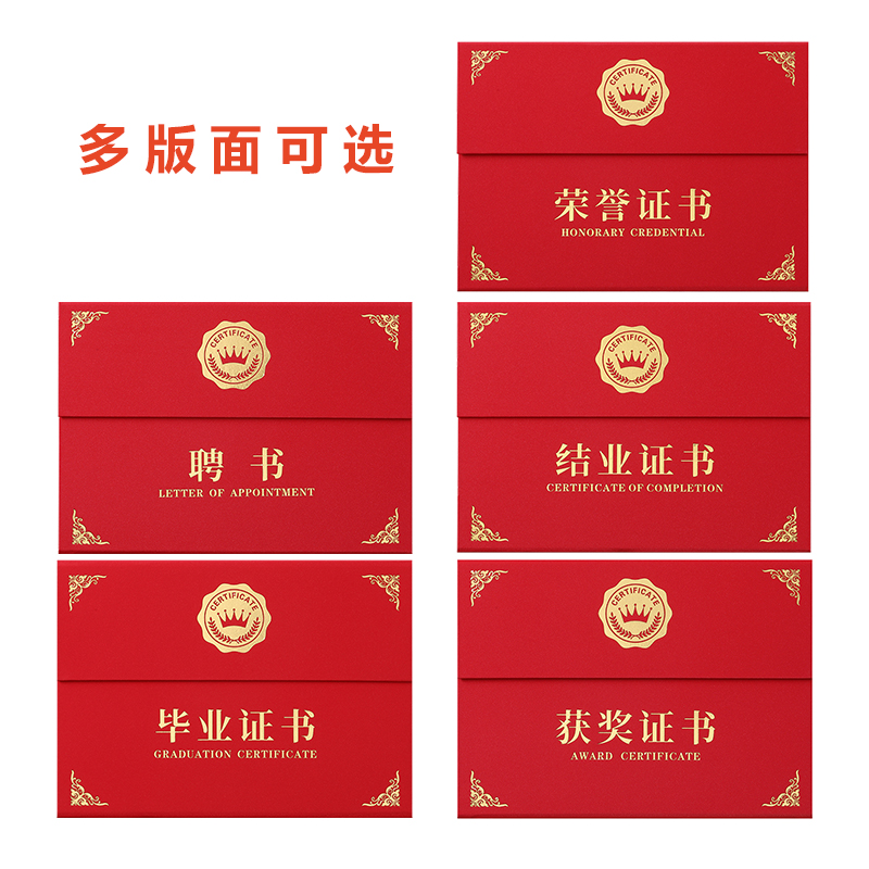 推荐理由:三折A4结业证书荣誉证书优秀员工获奖聘书结营外壳封面套烫金定制