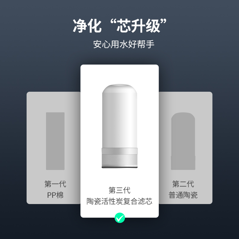 【到手1机1芯叠加淘金币后仅需37.5元,赠送安装大礼包】陶瓷活性炭复合滤芯+10层精滤过滤,巧妙地除氯祛味,过滤水中的杂质,双出水模式,按一按轻松切换,在现有的水龙头拧上就用!【30天试用】