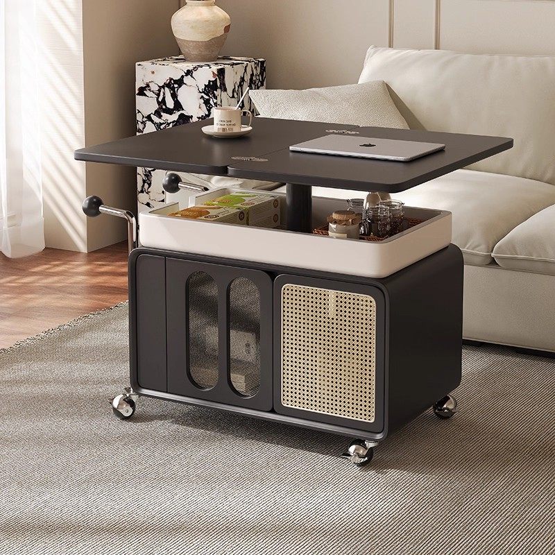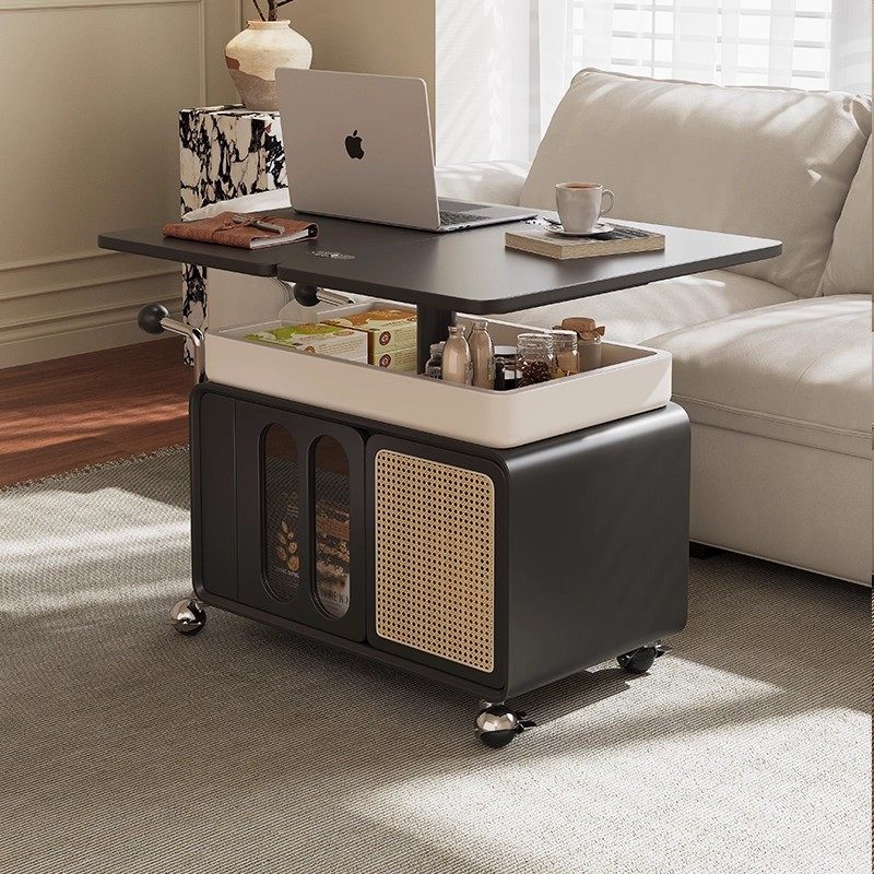 中古风茶几小户型可移动茶桌折叠升降客厅沙发边几边柜小推车茶台