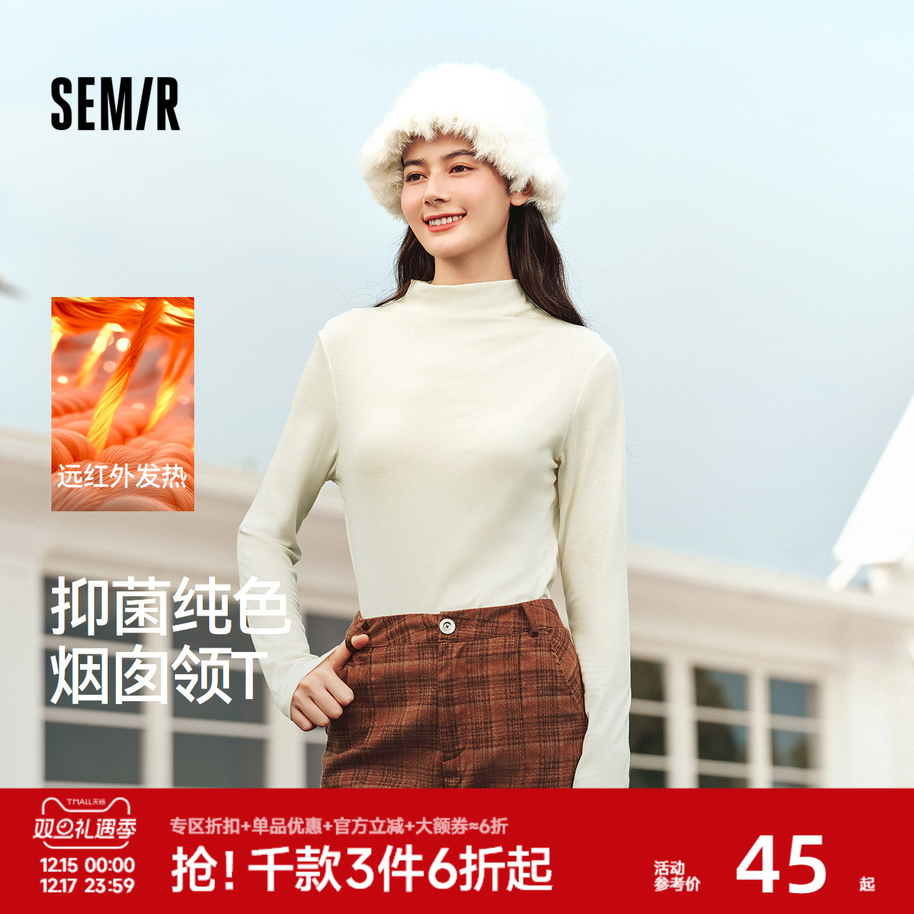 森马长袖T恤女冬半高领发热抑菌纯色修身上衣显瘦百搭气质打底衫