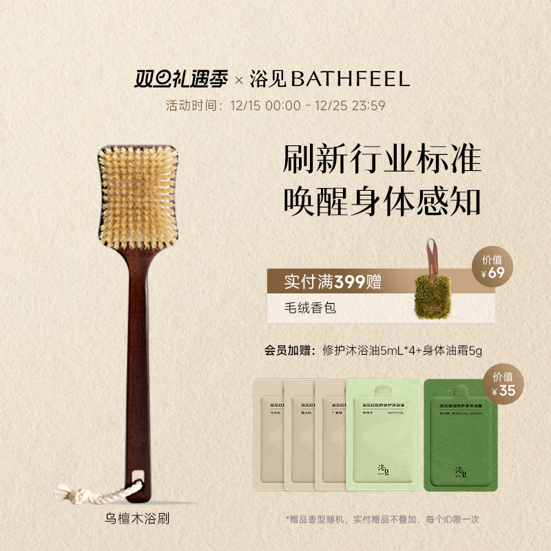 【圣诞礼物】浴见乌檀木猪鬃浴刷懒人浴刷按摩身体洗澡搓背神器